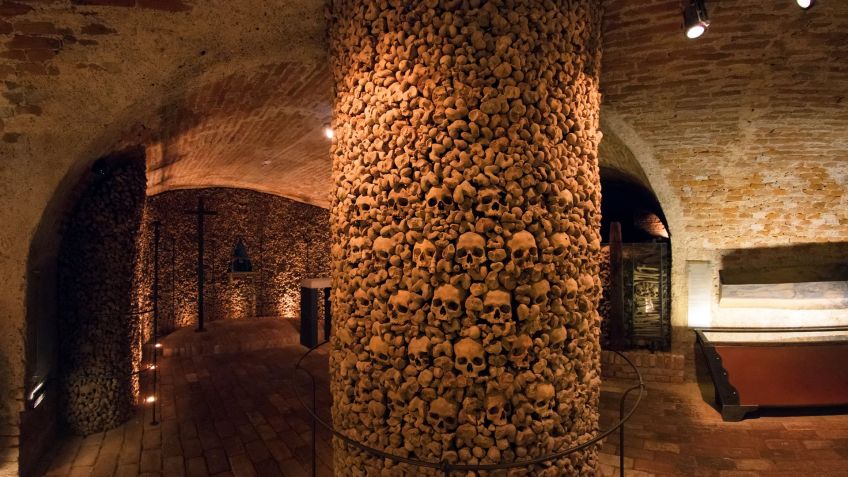 Las paredes cubiertas de calaveras, los pasillos iluminados con luz tenue y el silencio que domina el lugar construyen una atmósfera solemne y reflexiva. Es un recordatorio tangible de la fragilidad de la vida y de la memoria histórica de la ciudad.