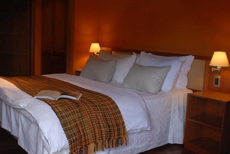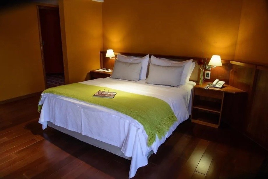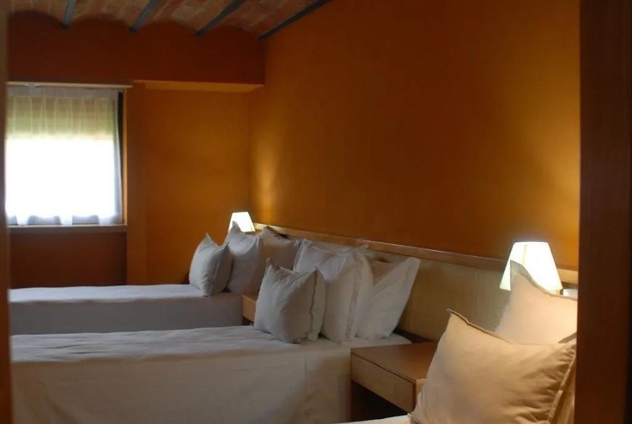 El ambiente interior mantiene la misma lógica que los espacios comunes: materiales nobles, madera, líneas simples y una estética cálida que evita el lujo ostentoso y se inclina por lo confortable. Es un lugar para dormir bien, descansar en serio y sentirse contenido.