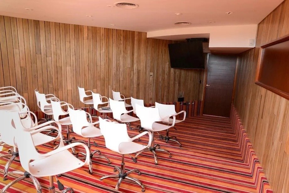 La combinación de piscina exterior, grandes ventanales, mucha luz, bar y buffet habilita un uso todo el año: en verano, como refugio fresco en la pampa bonaerense; en invierno, como escenario ideal para un fin de semana de descanso con chimenea, spa y buena gastronomía.