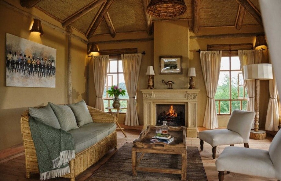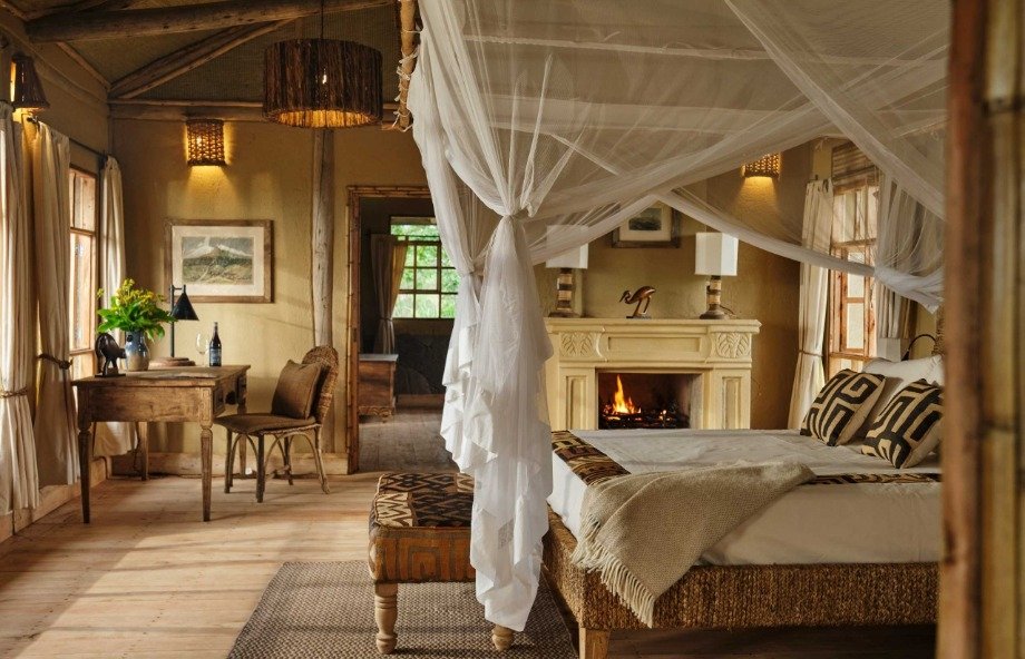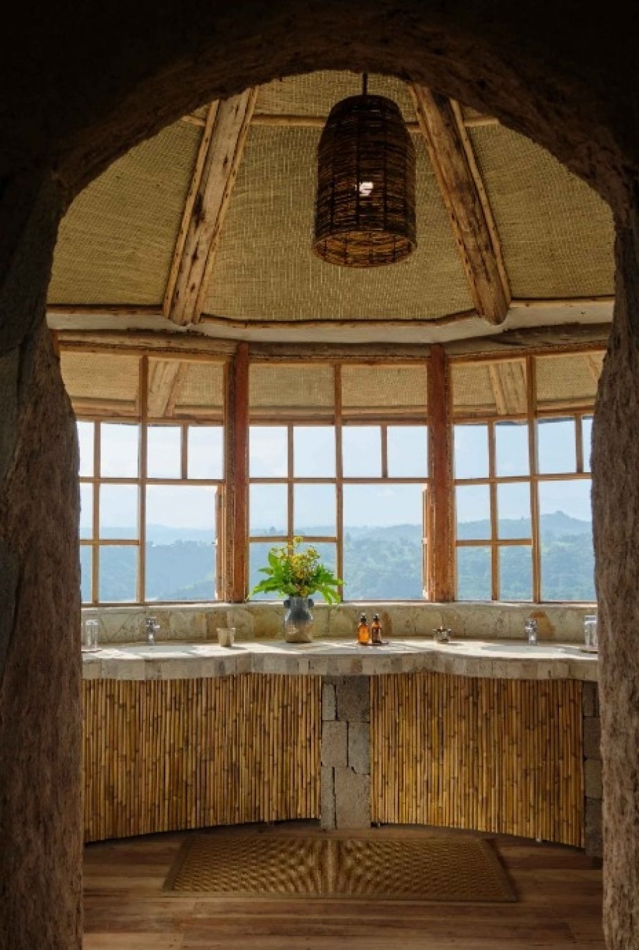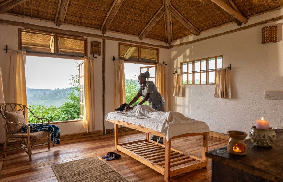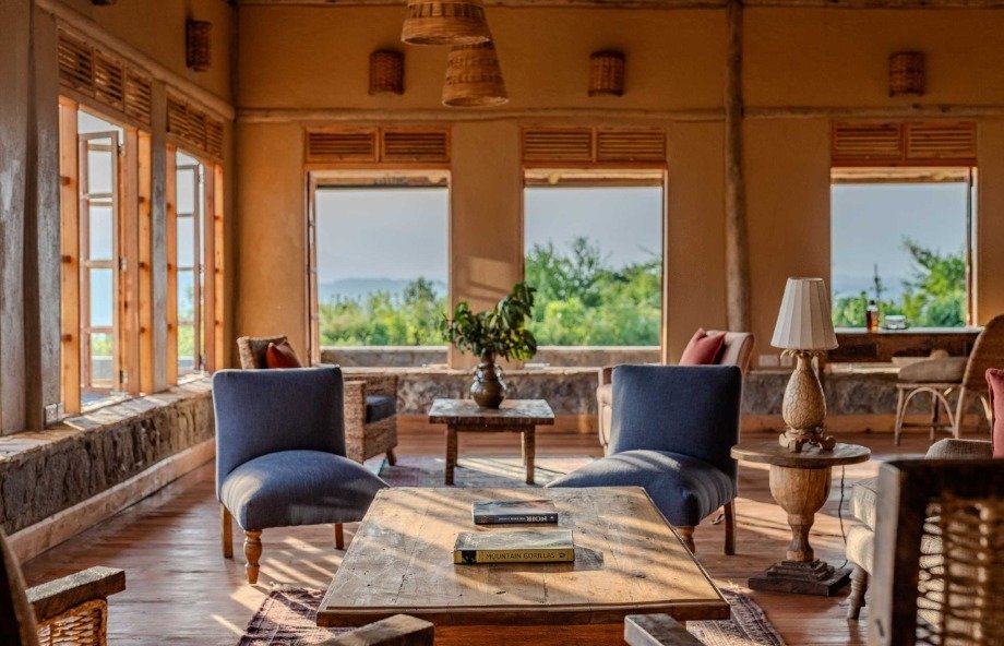 Al frente del equipo constructivo estuvo Cyprien Serugero, quien dos décadas atrás edificó el icónico Virunga Lodge en Ruanda, junto al supervisor de obra John-Bosco Tukamuhabwa, responsable de la reciente reconstrucción del Mount Gahinga Lodge. Joseph Nsabimana, maestro carpintero y ebanista, y Wycliffe Tuyambaze, especialista en tapicería textil, definieron los acabados distintivos que hoy caracterizan al espacio. Cada mueble tallado, cada textura sobre una pared, cada pieza de madera lleva implícita la mano de alguien que conoce el bosque que lo rodea. Esa continuidad entre lugar y objeto es difícil de falsificar -y no es casual que se perciba desde el primer instante.